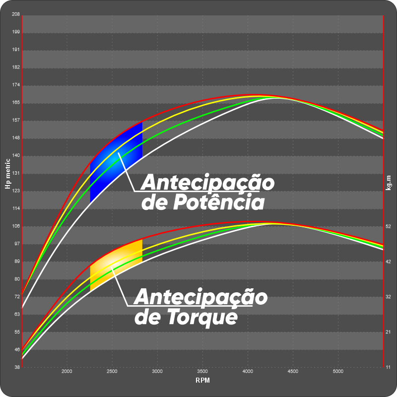 antecipa as curvas de torque e potência
